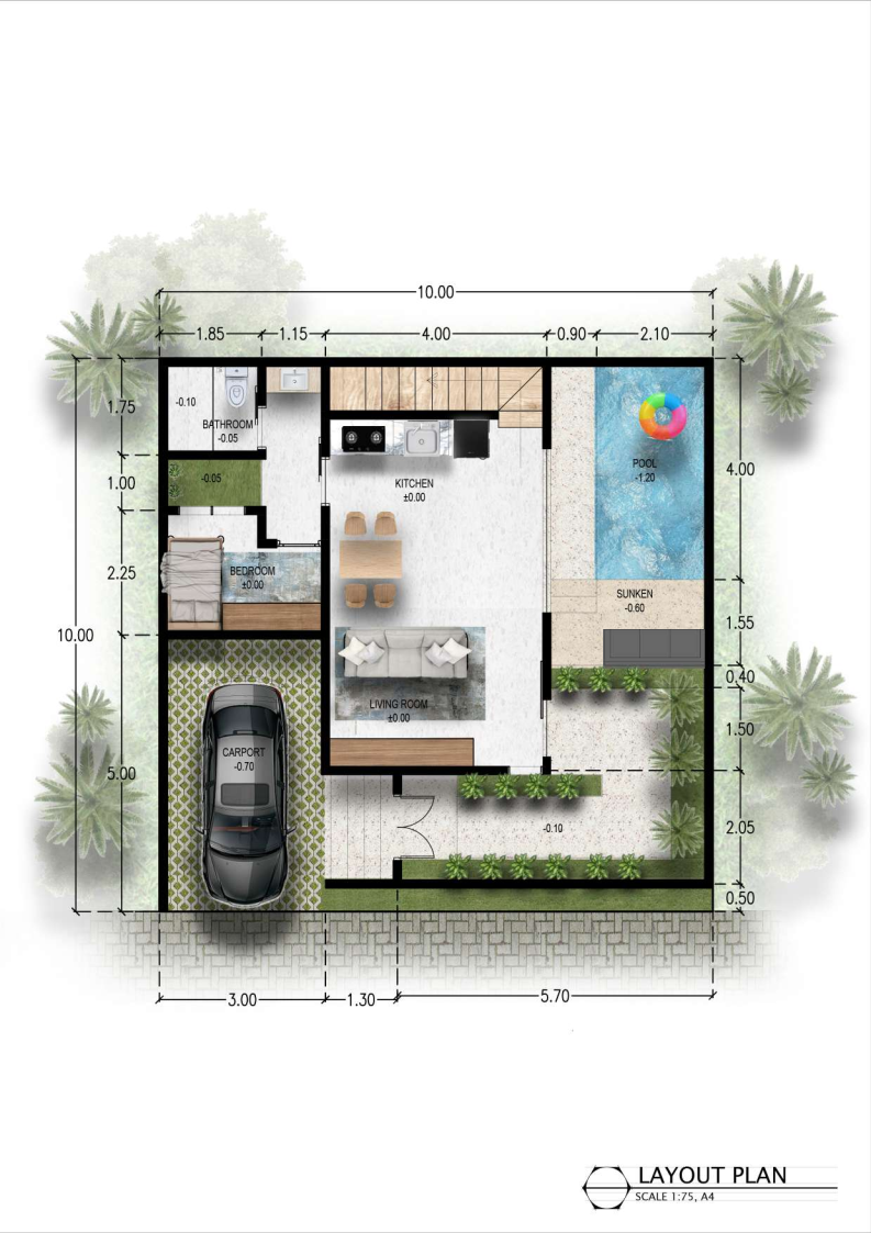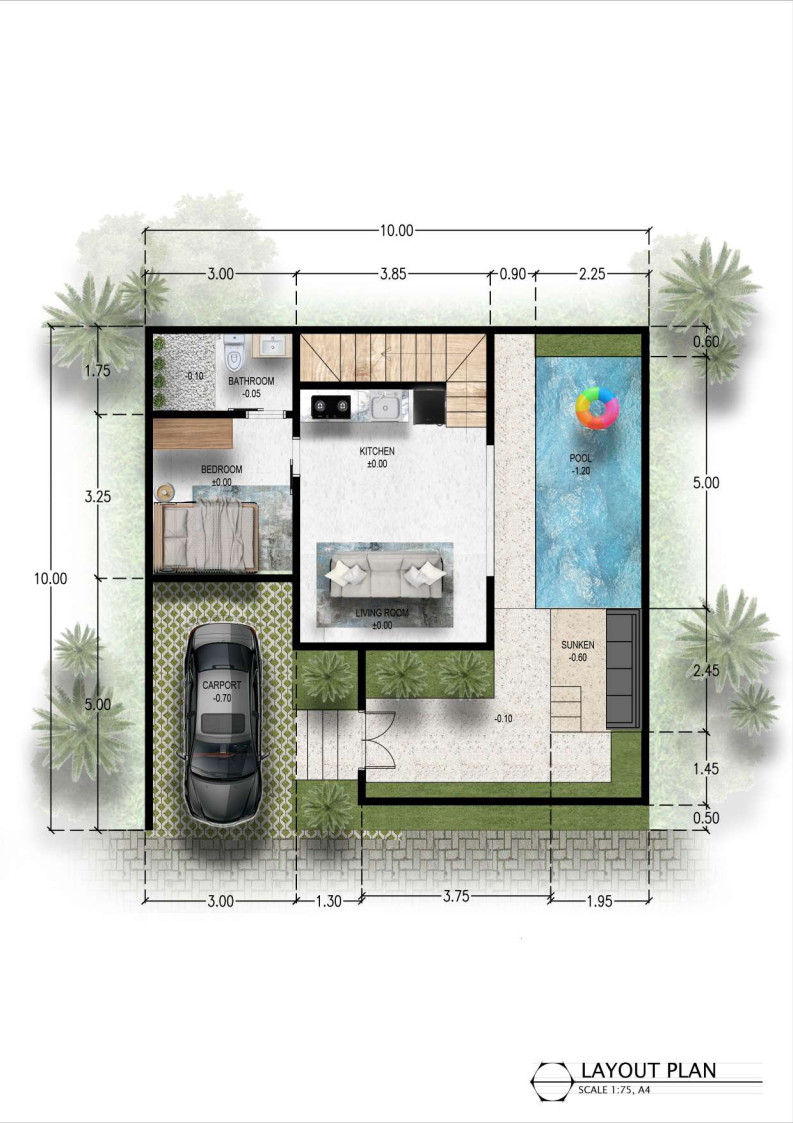 Seluruh elemen konstruksi dipilih untuk menghadirkan hunian tropikal modern yang tidak hanya estetis, tetapi juga fungsional dan tahan lama—siap digunakan tanpa perlu renovasi tambahan.